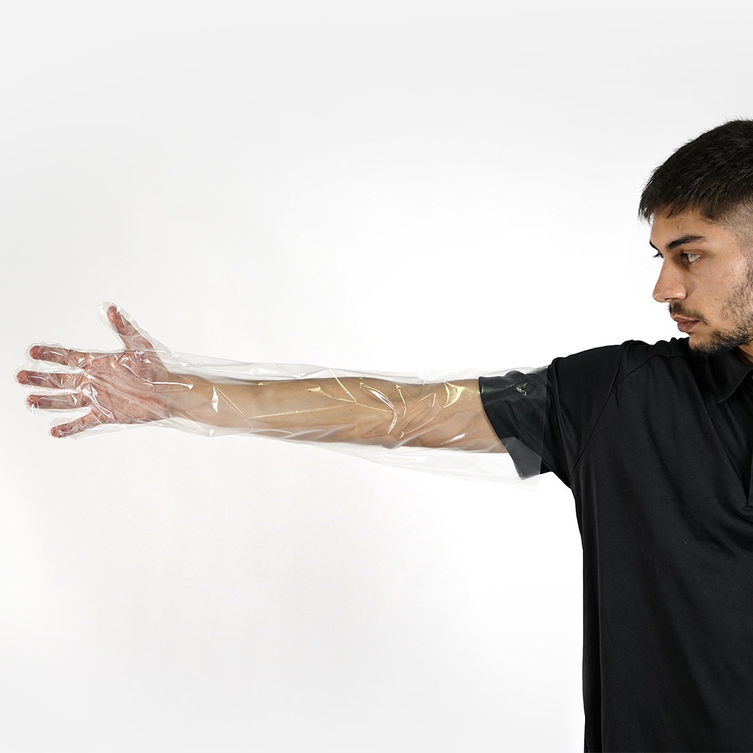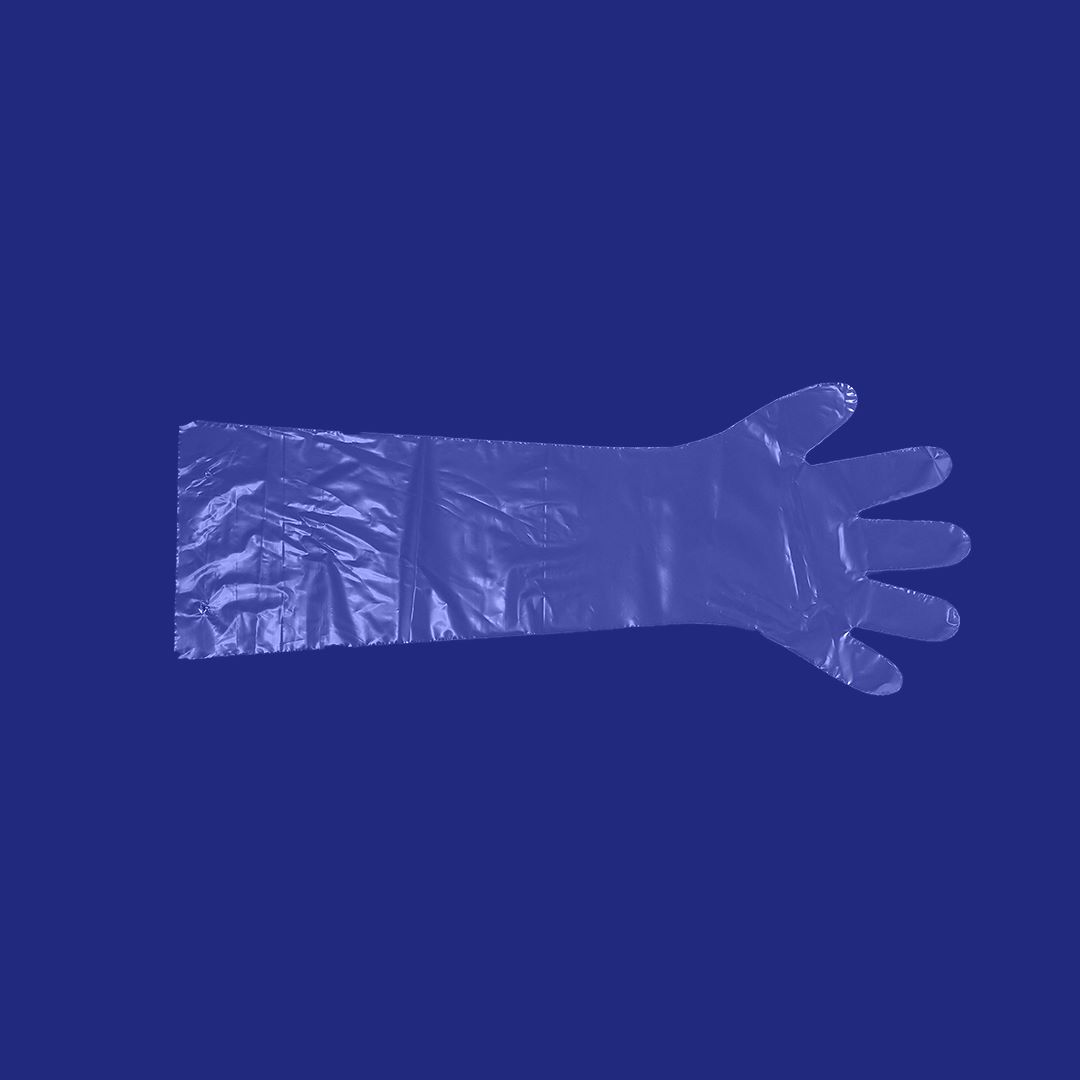 Disposable gloves made of polyethylene - lenght about 65 cm.